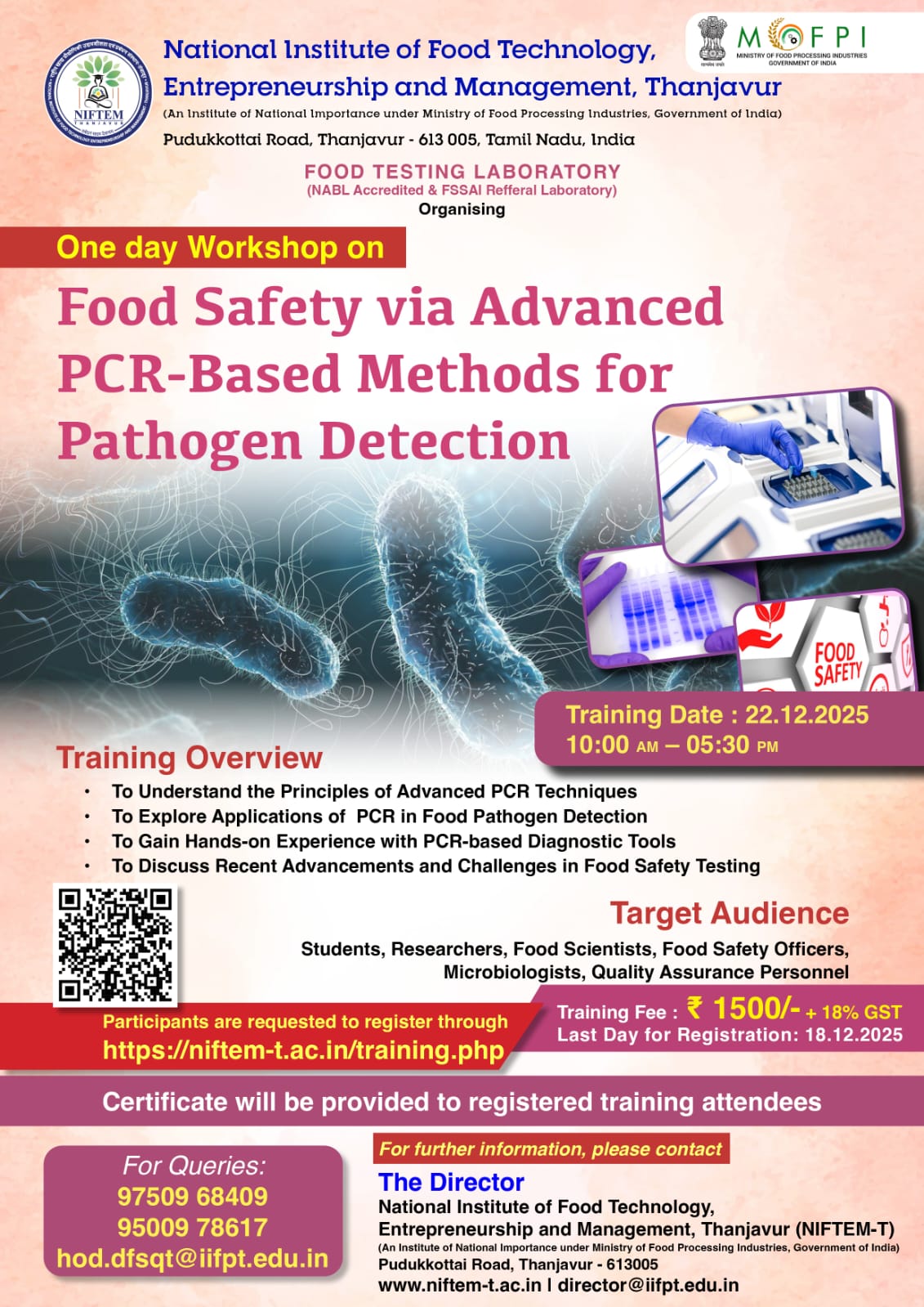 One Day Workshop on Food Safety via Advanced PCR-Based Methods for Pathogen Detection