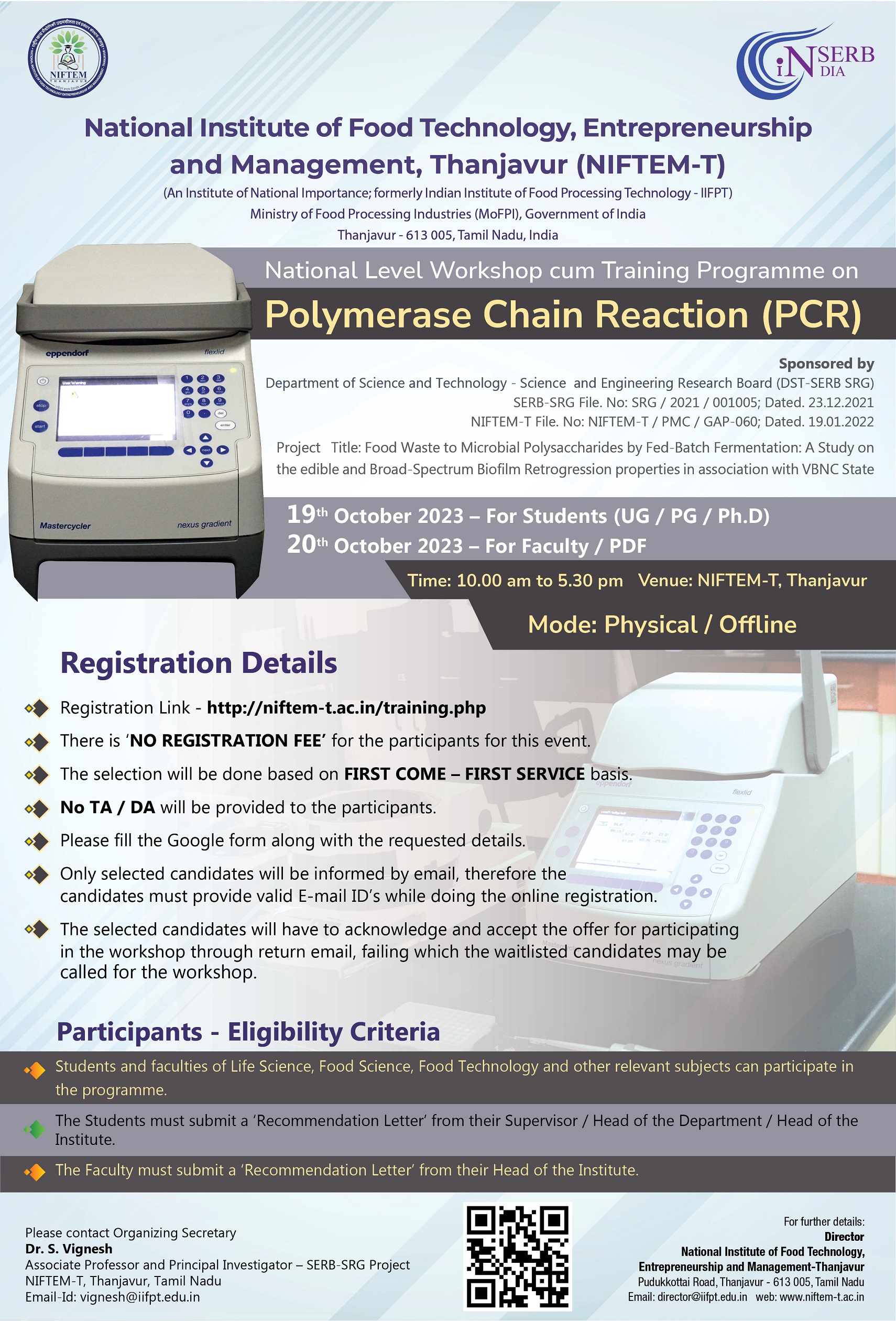 National Level Workshop cum Training Programme on Polymerace Chain Reaction (PCR)