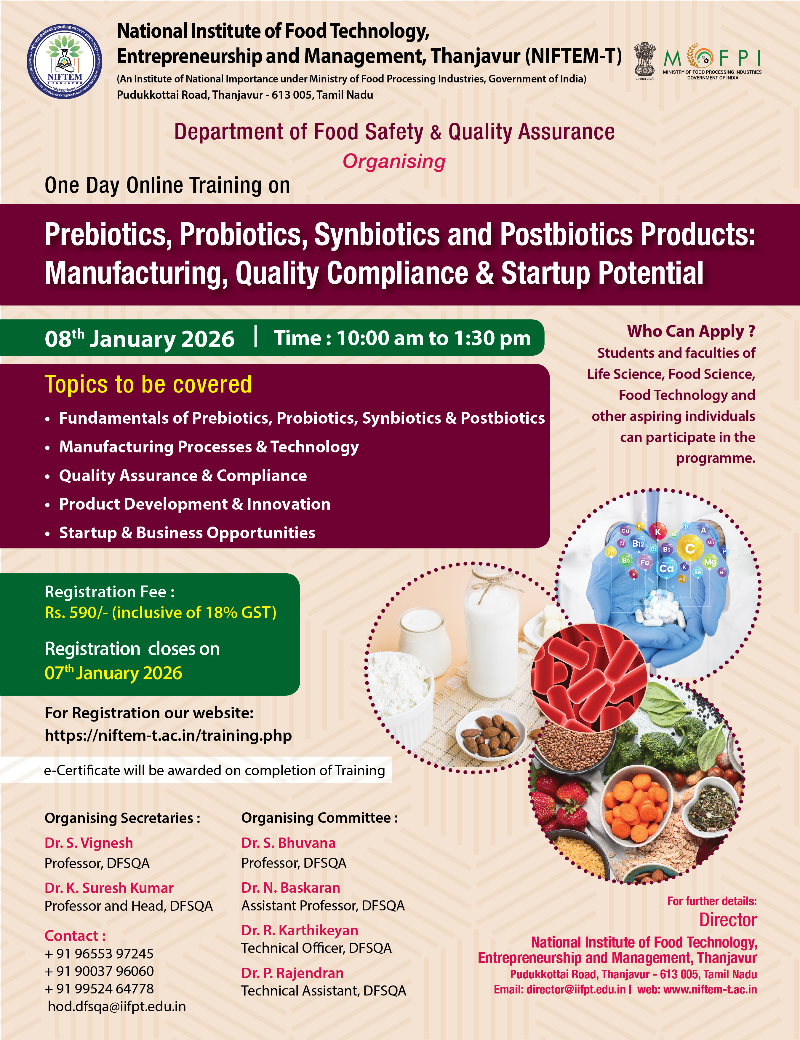 Online Training on Prebiotics, Probiotics, Synbiotics and Postbiotics Products: Manufacturing, Quality Compliance and Startup Potential