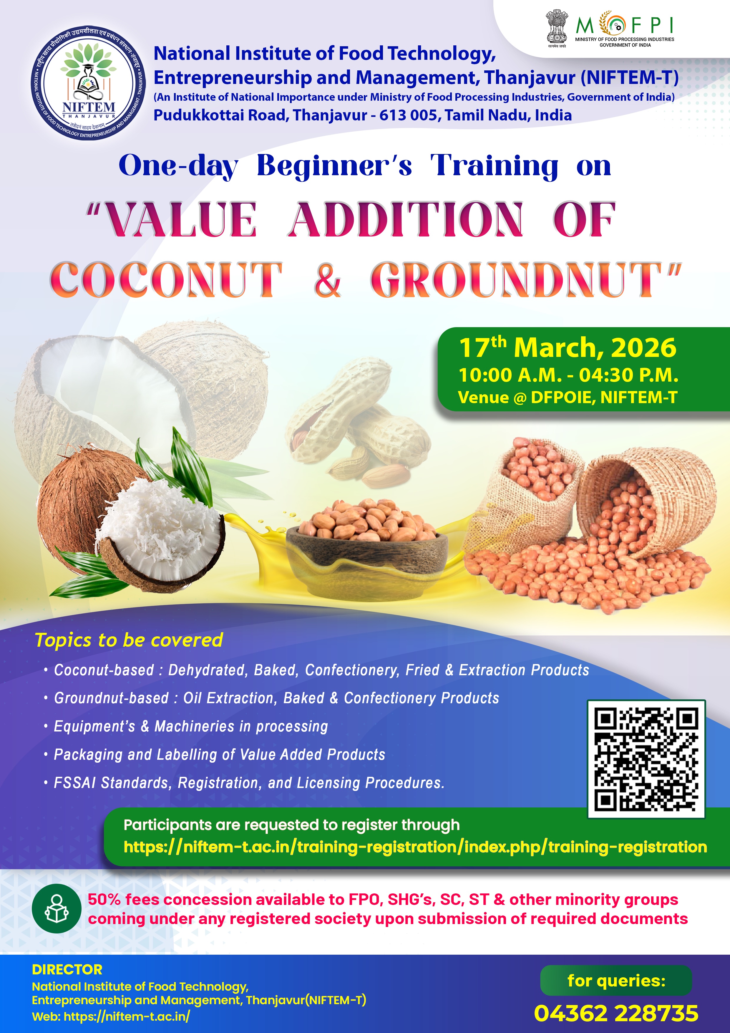 One-day Beginner's Training on Value Addition of Coconut & Groundnut